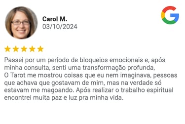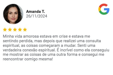 Cada consulta espiritual é única, considerando todos os aspectos da sua vida, como amor, trabalho, saúde e espiritualidade. Ao realizar uma leitura detalhada de tarot, búzios ou cartas, buscaremos juntos as melhores soluções e orientações, sempre respeitando sua individualidade e necessidades pessoais. Com a minha orientação, vamos abrir caminhos e alinhar sua energia para resultados harmoniosos, trazendo paz, clareza e transformação para sua vida. Aqui, mais do que respostas, você encontrará a verdadeira conexão consigo mesmo. Agende sua consulta e inicie o seu processo de cura e autoconhecimento.